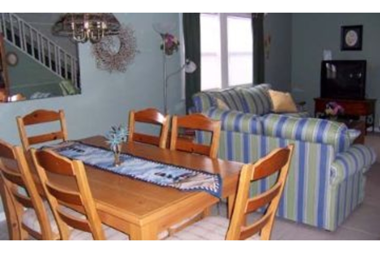This is a two bedroom, two and a half bath townhome, with accommodations for up to eight people. This home has a king bed in the master bedroom, two queen beds in the guest bedroom, and a sofa sleeper is available in the living area for extra guests. The kitchen is nice and spacious, with all the modern appliances you need to make your stay enjoyable. There is plenty of furniture out on all of the decks where you can relax and take in the wonderful views afforded here. For your entertainment there is a tv and dvd player in the living area, and the dining table seats six people.Surrounding Description