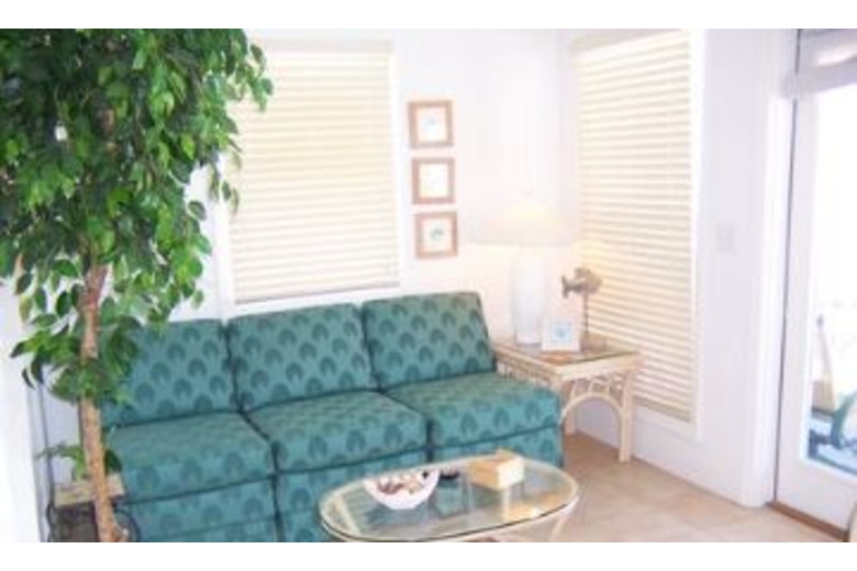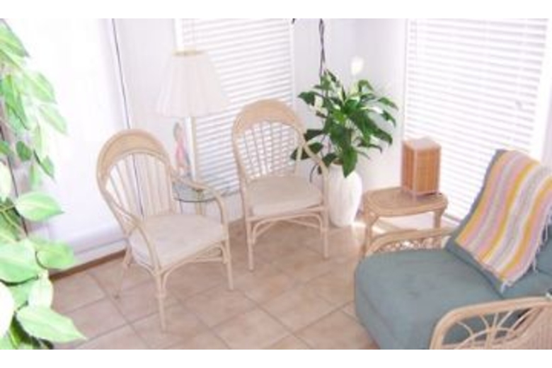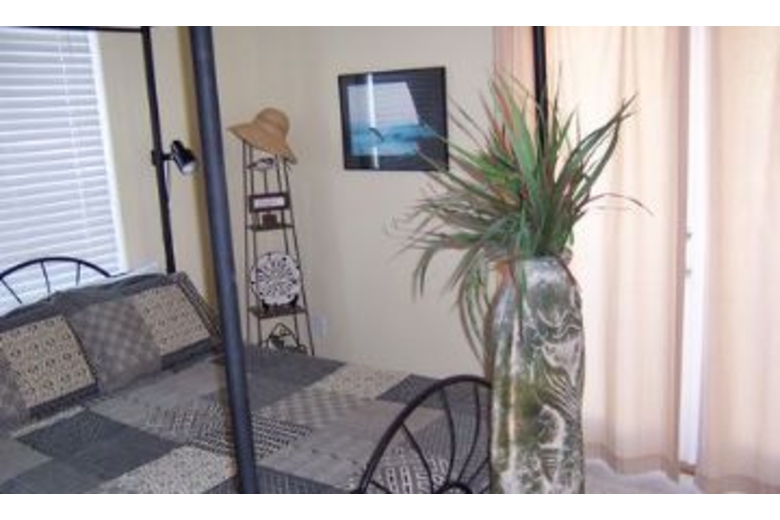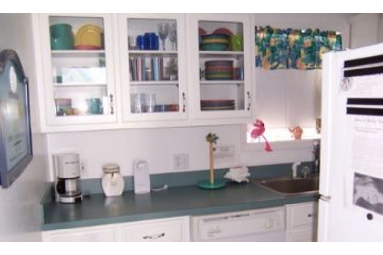 This home has two bedrooms, a loft and two baths. The fully equipped kitchen has a coffee maker, dishwasher and microwave. The living area has tile flooring, access leading outside, a TV and VCR. The dining area also has tile flooring plus a table and six chairs. The master bedroom has a double bed and two windows. The second bedroom also has a double bed with a seashell bedspread. In the loft there are two twin beds.Surrounding Description