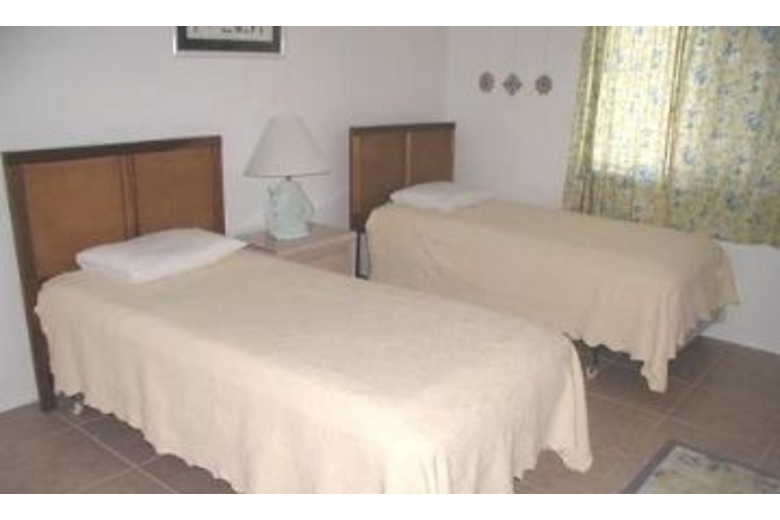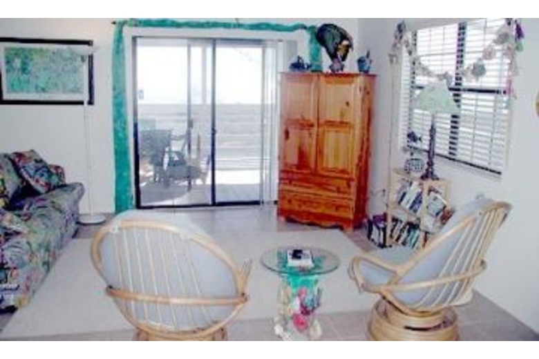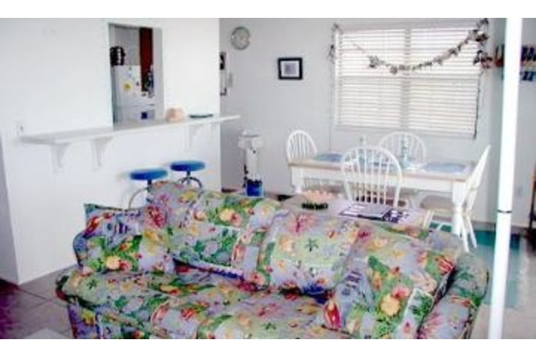 This two bedroom, two bath home can sleep up to seven people comfortably. The master bedroom has a queen bed and seashell lamps. The second bedroom comes with a double bed and a twin bed. There is a double sofa sleeper in the living area for two more guests. The dining area has a table, four chairs and a ceiling fan. There is a fully equipped kitchen with a coffee maker, dishwasher, microwave and a breakfast bar with extra seating. The living area has a stereo, TV and VCR.Surrounding Description