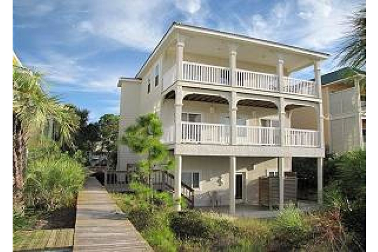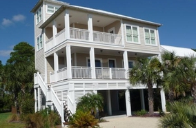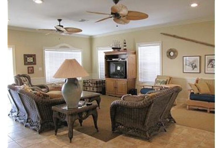 This fantastic 3,200 square foot, plantation-style, Gulf-front home is beautifully decorated and furnished with palm leaf ceiling fans, antiques, and vintage pieces. Off each bedroom is a spacious covered deck and there are two Gulf-Front bedrooms with decks where you can relax and enjoy your morning coffee and watch the dolphins swim by. The spacious, fully-equipped kitchen has nice appliances and granite countertops. There are two living areas with cable TVs, stereos, and DVD's. The master bath has two sinks, a walk-in shower, and a large Jacuzzi tub with distressed travertine décor.