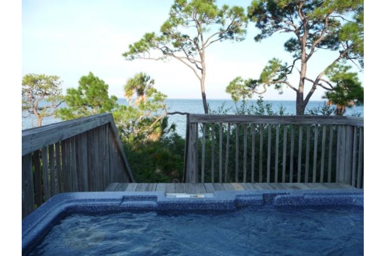 As you enter the majestic circular drive, you know that you have arrived at your special vacation spot. Enjoy the privacy and peacefulness of this gorgeous home with expansive views of the bay. Watch the awesome sunrises and eagles, from the house, dock, screened porch,or hot tub. The sunrise view over St. Joseph Bay is so magnificent that it was recently featured in an Atlanta Southeast Airlines magazine.