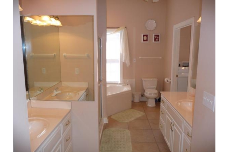 The spacious master bedroom has a king sized bed, direct walkout to the huge screened porch, a large bathroom with separate his and hers vanities, separate shower and large whirlpool tub. The other bay front bedroom has a king sized bed and ensuite access to the second bath with shower. The third bedroom has a trundle bed and bunk beds, providing accommodations for 8. The full house's lower level has fully equipped kitchen, 2ne laundry facilities, screen porch, two bedrooms and 1 bath and sleeps 6 for a total of 14.