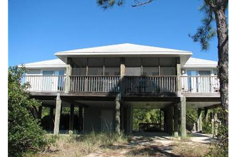 GULF VIEW HOME ON INDIAN PASS Located halfway between Port St. Joe and Apalachicola, but just a stone's throw from St. Vincent's National Wildlife Refuge and about 20 minutes to the St. Joseph Peninsula State Park. This 3 bedroom, 2 bath house with large living/dining/kitchen combo, has a sun deck on each side of the screened porch all offering views of the Gulf of Mexico. The fishing is good, the shelling is great or just sit back and watch the shrimp boats go by and enjoy the SEASIDE SERENITY