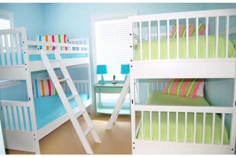 Bunk room has double bunk beds sleeping 4 with own vanity sink and access to Jack and Jill toilet and shower