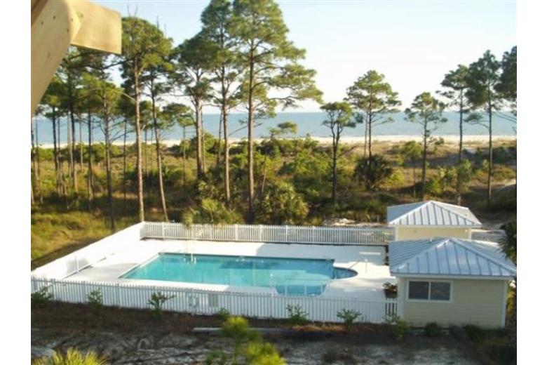 "Gloriline" at Crescent Palms Beach is absolutely one of the premier homes on Cape San Blas. This truly unique custom built home is a treasure to our forgotten coast. Set back among the Pines for privacy, Gulf-front screened porches overlook the pool area and three other homes on the three acre site. Watch dolphins and the sunset from the private beach access or strolling on the wide beach just below. Most holidays bring no more than 40 or 50 people to the six mile stretch of beach, which is wonderful for shelling.