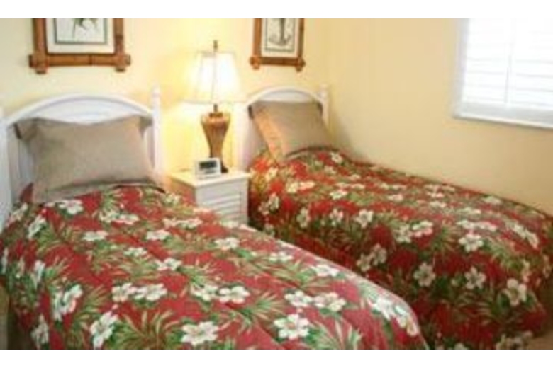A tropical inspired vacation home that has two bedrooms and two baths. You'll love the gated community with heated pool and the short walk to the beach. Enjoy the water views from the private lanai. This home features a washer/dryer, full kitchen and a grill. The furnishings are all rich and tropically inspired for added luxury. The master bedroom has a king size bed and the second bedroom has two twins.Surrounding Description