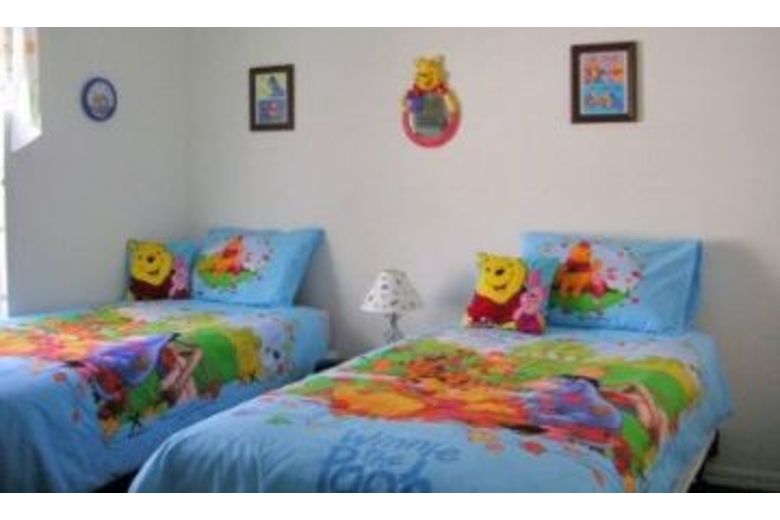 Luxury 4 bedroom villa with south facing pool overlooking conservation area. Fully equipped games room, master bedroom suite with closet/dressing room & en-suite bathroom. Winnie the Pooh bedroom especially for the children. Huge 30'x20' living room furnished to a very high standard with sumptuous leather sofas. Large fully fitted kitchen and separate dining room. A truly elegant villa with everything available to make your vacation really special. It has a south facing swimming pool which overlooks a beautiful wooded conservation area.Surrounding Description