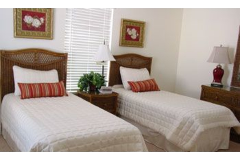 This two bedroom, two and a half bathroom townhouse is near the beach. It has a well equipped kitchen, washer and dryer, TV, DVD player, pool and garage. Bedroom one has a queen size bed. Bedroom two has two twin beds.Surrounding Description