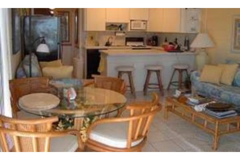 This renovated two bed two bath duplex is a great place to relax and enjoy your next vacation. It has one king bed in the master and twin beds in the guest room to sleep four guests. It has a full kitchen with breakfast bar, a dining set for four, colorful living room, three TV's, a VCR and washer/dryer. Out on the patio, guests can dine at the table and chairs, make use of the charcoal grill at mealtimes or simply relax in the Florida Sun with a good book. There is a dockage area for a boat and a bait table and freezer for your convenience.Surrounding Description