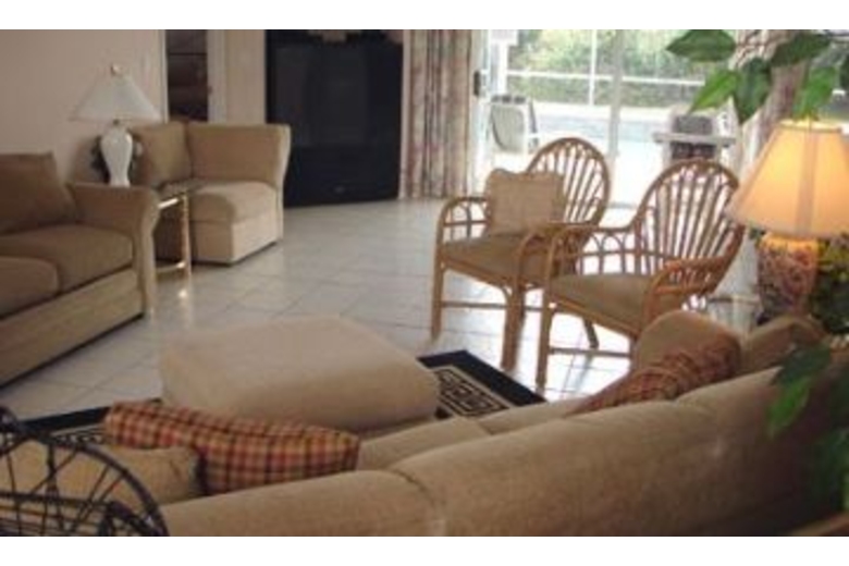 This luxurious two bedroom, two bathroom suburban home has sleeping accomodations for 4 people. This home has a very open, architecturally pleasing floor plan has a big master suite with a plush pillow top mattress on a king size bed to cuddle you at night. Wake to the luxury of an all-marble bath with 2-person Jacuzzi and giant shower built for two. The 15 foot high ceiling family room over looks the oversized pool and covered lanai where you can enjoy outdoor dining.Surrounding Description
