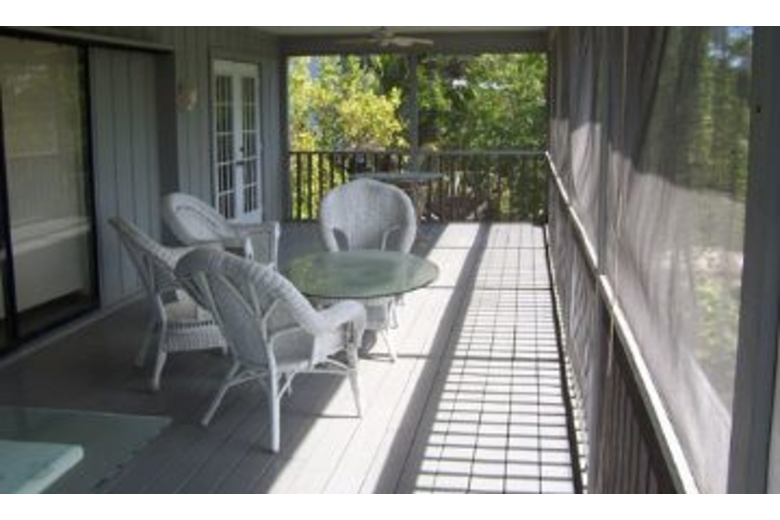 This two bedroom, two bath home can sleep up to six people comfortably. The master bedroom has a king bed and access out onto the porch. The second bedroom also has access out onto the porch plus two twin beds. The fully equipped kitchen has a breakfast bar with extra seating along with tile flooring, a microwave, toaster, dishwasher and coffee maker. For some extra entertainment there is a DVD player, stereo and cable TV in the living area. There is a double sofa sleeper for two extra guests that can be found in the living area.Surrounding Description