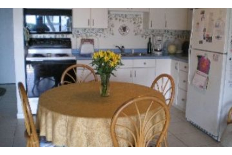 Palm trees greet you as you enter the front yard of this great two bedroom, two bathroom 1/2 duplex with A/C and beautiful interior. Classic decor throughout provides comfort and relaxation especially in the lovely living room, kitchen and bedrooms. Enjoy making a meal in the full kitchen with a dining table for four. A crisp, clean living room provides a pull out sofa and entertainment center. The views from the backyard are amazing.Surrounding Description