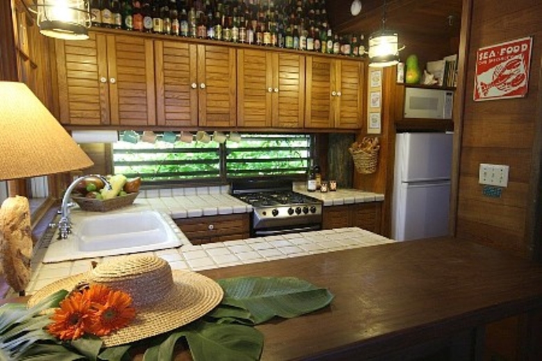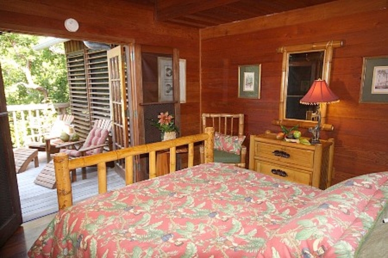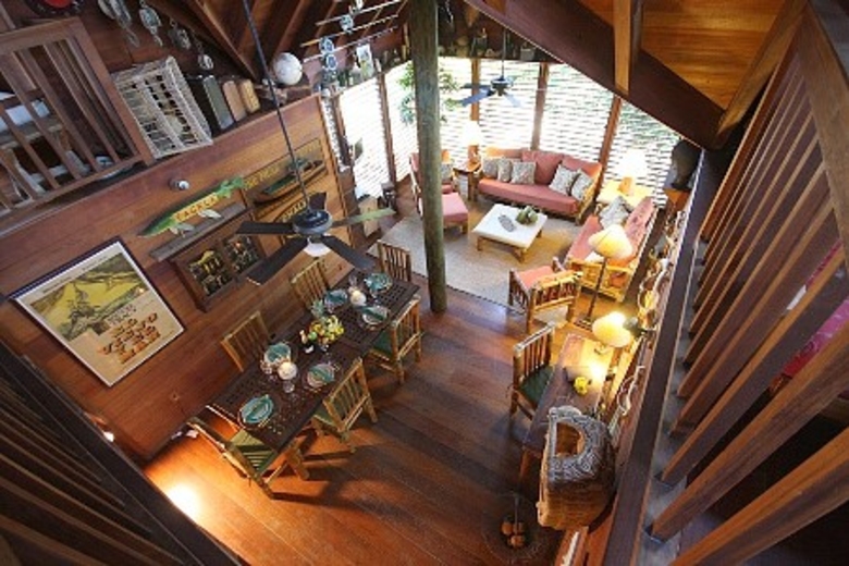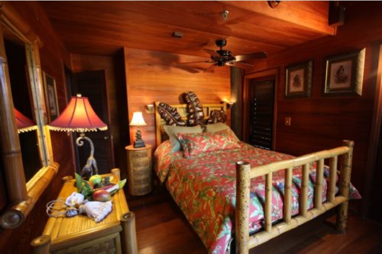 A weathered boardwalk takes you from the dock to the house. Beautifully crafted like a ship of tropical hardwoods, the house is built in the traditional "Old Florida" style. The expansive decks and porches are separated from the cathedral ceilings, spiral staircase and interesting nooks and crannies by screened cypress louvers that capture cool sea breezes. Seabird is stocked with all the toys you need for a week on the water, including a 19', 90 h.p. runabout, Sunfish sailboat, masks, fins, fishing gear, and towing tube. Bring your camera and swimsuit (or leave it at home) everything else is provided for you; from beach towels to board games. No amenity has been overlooked including a remarkable collection of island literature, an extensive library of Caribbean and classical music, and a music loft complete with piano. An indoor/outdoor cassette/CD stereo as well as a TV/VCR is provided. The maximum number of occupants is eight. There are two double bedrooms with private bathrooms on the main level, and four bunk beds in an upstairs sleeping loft, which has its own bathroom. There are also two outdoor showers. A sophisticated solar energy system provides power for all electrical needs, including such amenities as ceiling fans, telephone, a microwave, and coffee bean grinder, but there is no air conditioning to distract from the appreciation of a coexistence with nature. The 20,000 gallon cistern collects fresh water and is decorated with shells, broken glass and coral rock imbedded in its sides....a work of art in itself! Recycling utilizes the bountiful resources...seaweed is harvested and composted, gray waste water irrigates plants and fruit trees which provide tropical delights to Island guests. Feeding the table scraps to the fish under the docks, which are a delight to snorkelers, can save a trip to the fish market for a succulent snapper on the dinner table!Surrounding Description