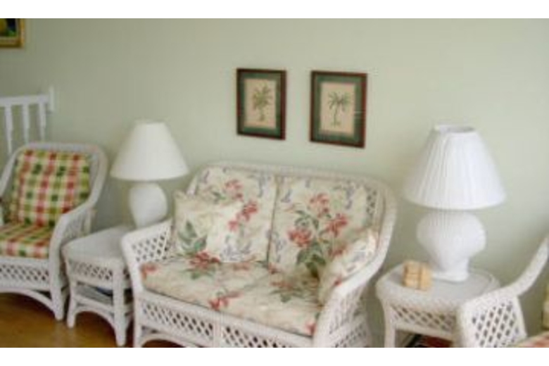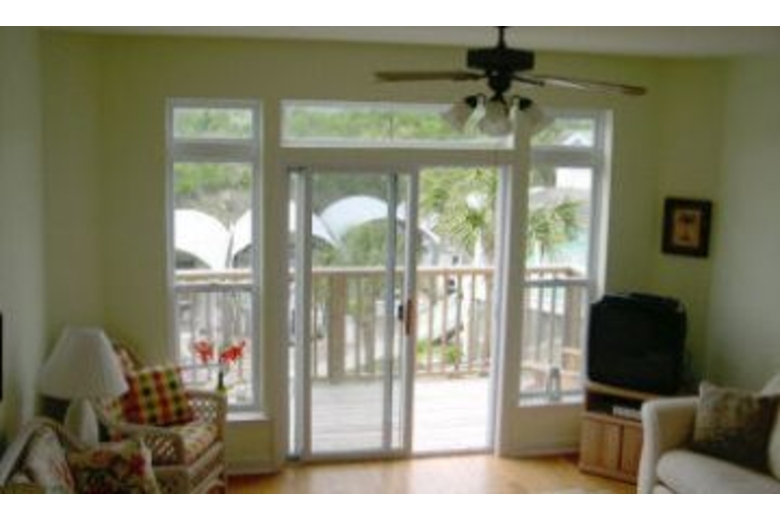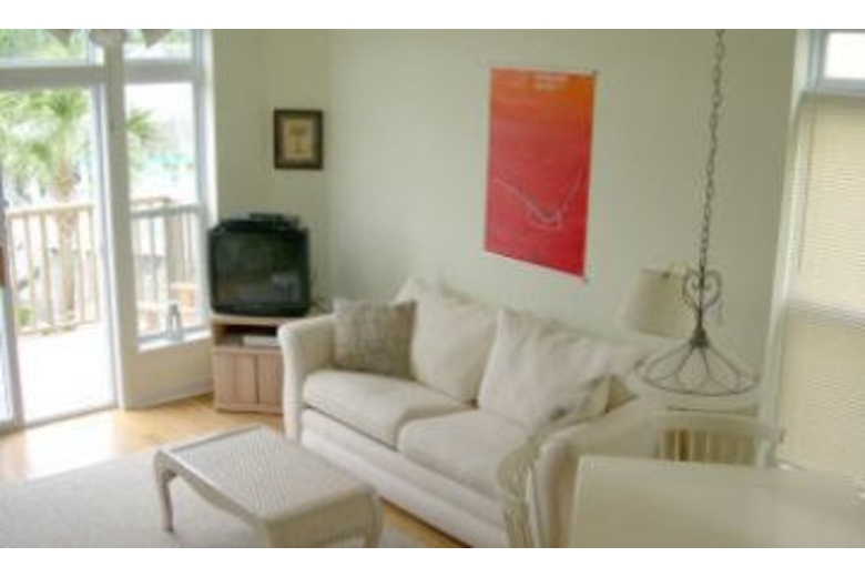 This two bedroom, two and a half bath home sleeps up to six comfortably. In the living area you will find hardwood flooring, TV, VCR, and a DVD player. Each bedroom has a queen bed and there is a queen sofa sleeper available in the living area. This home also has a fully equipped kitchen, washer/dryer, and central air conditioning. Please note that boat can be no longer than 28 feet.Surrounding Description