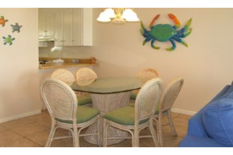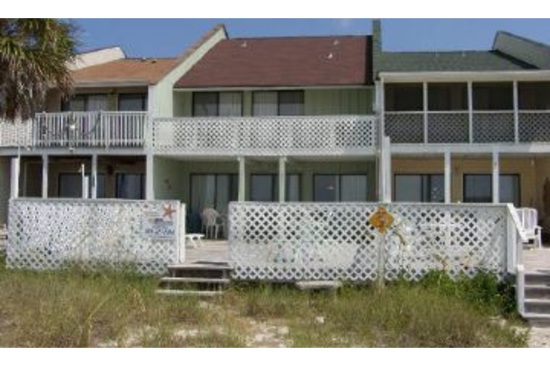 Floor Plan as follows: Ground Level-fully equipped kitchen, separate laundry room, bath, dining area and a gulf front living room that opens onto a large deck with plenty of furniture and charcoal grill, a sleeper sofa, TV, VCR and stereo as well as a separate Bistro-style table for extra dining. 1st Level-Full bath; Bedroom 1-a gulf front bedroom with queen bed, full bath and TV; Bedroom 2-queen bed; Bedroom 3-2 twin beds.Surrounding Description