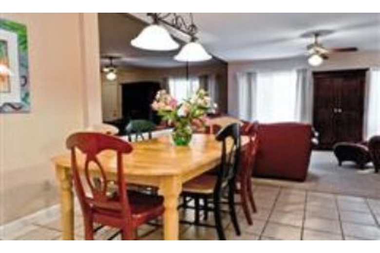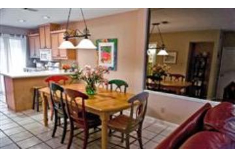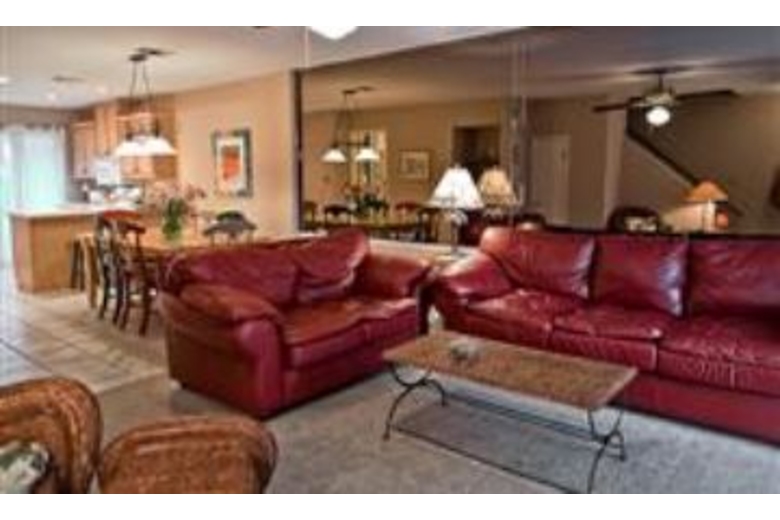 This spacious and comfortable townhome has two bedrooms and three bathrooms. The great room has beautiful tile flooring, a large living area, a dining table, and a kitchen providing an excellent place for entertaining your guests. Both of the bedrooms have a tropical feel with brightly colored accents. With accommodations for up to seven guests, bedding consists of two king beds, one twin bed, and a queen sleeper sofa. This unit has comfortable leather furniture adding an upscale, comfortable appeal. Other features of this townhome include three TVs, one DVD player, a stereo, and a washer and dryer. The kitchen is modern with nice cabinetry, up to date appliances, and plenty of counter space. The large dining table has seating for all of your guests and is perfect for every meal or for playing board games with your family. Enjoy relaxing on the patio while watching the sun go down and the stars come out to shine.Surrounding Description