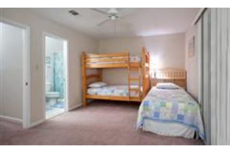 This townhome is spacious and has two bedrooms and two bathrooms perfect for the entire family. With plush carpeting, comfortable furnishings, and a private patio this townhome is very inviting. There is a full bed in the large master suite, a twin and set of bunk beds in the guest bedroom, and a sleeper sofa in the living area providing accommodations for up to seven guests. The living area is a wonderful place to entertain, or watch a good movie while sharing a bowl of popcorn with your guests. Features include a television in the living room and each of the bedrooms, a DVD player, a stereo, and a washer and dryer. The kitchen is fully equipped with everything you need to feel right at home during your stay. Beautiful tile flooring is found in the kitchen and dining areas giving a modern, upscale appeal. Enjoy relaxing on the patio while star gazing after a fun filled day on the beach.Surrounding Description