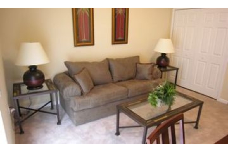 The first floor is furnished for business or leisure activity. Two bedroom suites each with their own bath are on the top floor; one with a king-size bed and the other with a set of twin beds. This town home sleeps 6 when the sofa bed is used. Each bedroom has its own flat screen TV. Fully equipped kitchen, dining and living area, plus half-bath are on the second floor. Additional amenities include large screen TV with surround sound and DVD player in the living area and washer and dryer.Surrounding Description