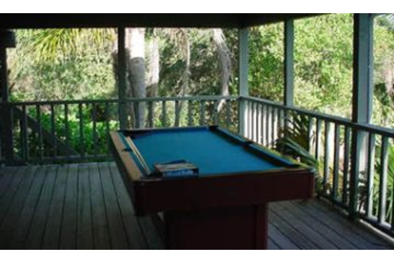 In this two bedroom, two bath home you will find yourself about ten minutes away from the Gulf of Mexico. Enjoy cooking in the fully equipped kitchen or out on the barbecue grill. For your convenience, there is air conditioning, a washer and dryer in this home. The master bedroom has a ceiling fan and king bed with a palm tree bedspread. The second bedroom has a ceiling fan, bunk bed (two twin beds) and a twin bed with a trundle. There is endless entertainment in this home including a pool table, cable TV, a stereo with CD player and VCR.Surrounding Description
