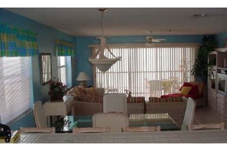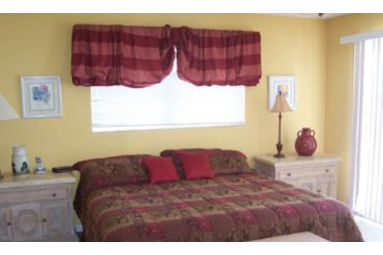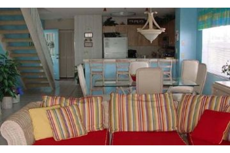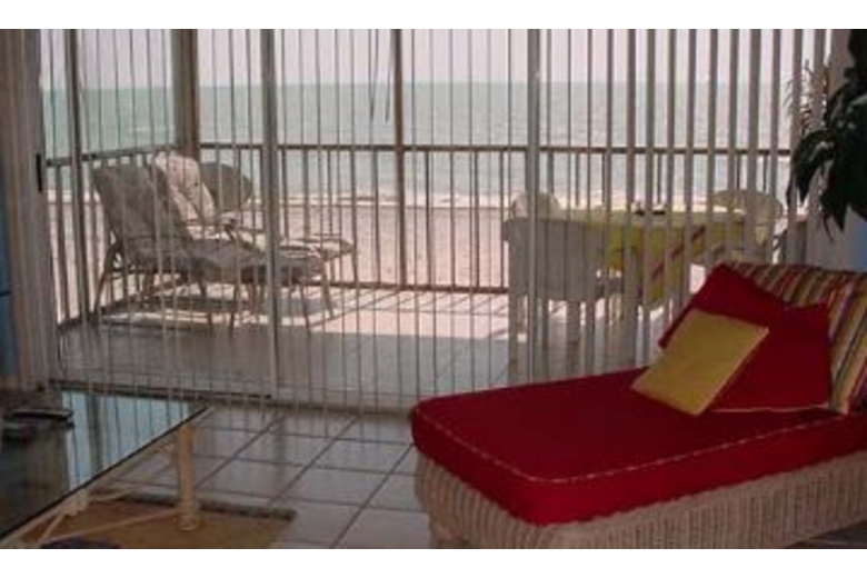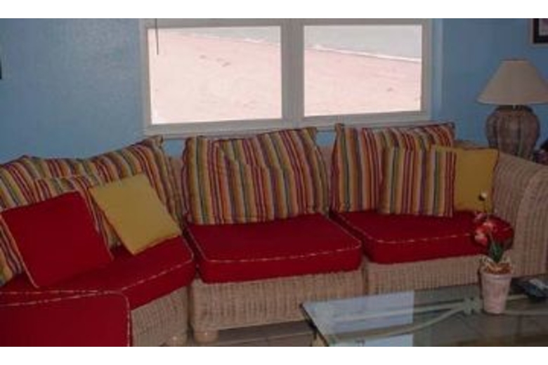 In the spacious main living area, this condo has satellite TV with a VCR and CD player, perfect for a movie night in. There is also a fully equipped kitchen, which has everything you need to make a delicious, homemade meal. The screened in porch has a table and chairs where you can eat that delicious dinner and watch the beautiful blue ocean. There are two bedrooms, two and a half baths, and can sleep up to six of your closest friends and family. The master bedroom has a luxurious, king sized bed and the guest room has two full sized beds. The home has a washer and dryer and is air conditioned to make you stay as comfortable as possible.Surrounding Description