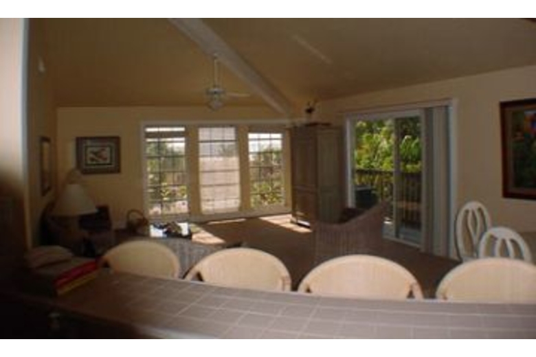 This two bedroom with one and a half bathroom vacation home has a wonderful view of the Gulf from the living room and master bedroom. The living room also overlooks the outdoor pool. Entertain family and friends in the spacious living room that offers comfortable seating, and cable television. Step out onto the deck and wave to family as they swim in the sparkling pool waters. The dining room has a large table that will seat eight guests making it perfect for a small group at mealtime. The kitchen is fully equipped and has a breakfast bar with additional seating. Four guests will sleep comfortably on the bedding provided, which includes one queen bed, and two twin beds.Surrounding Description