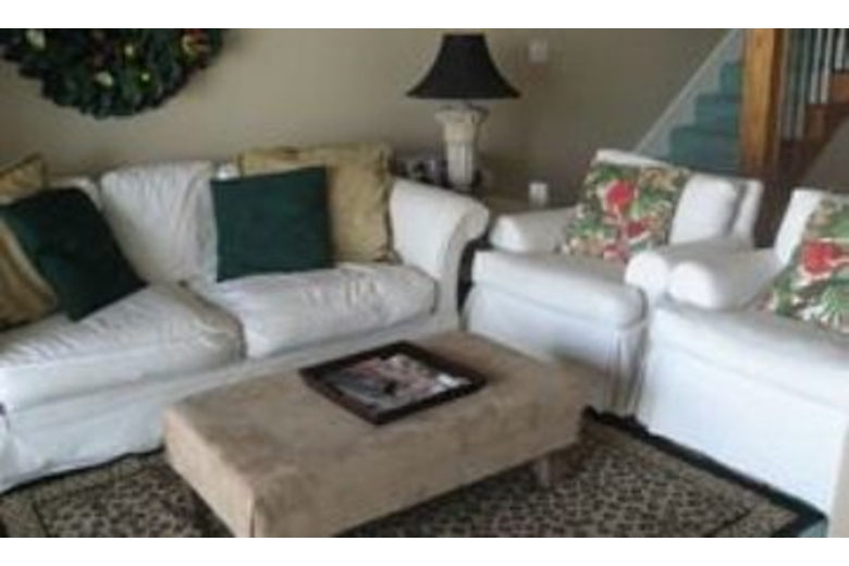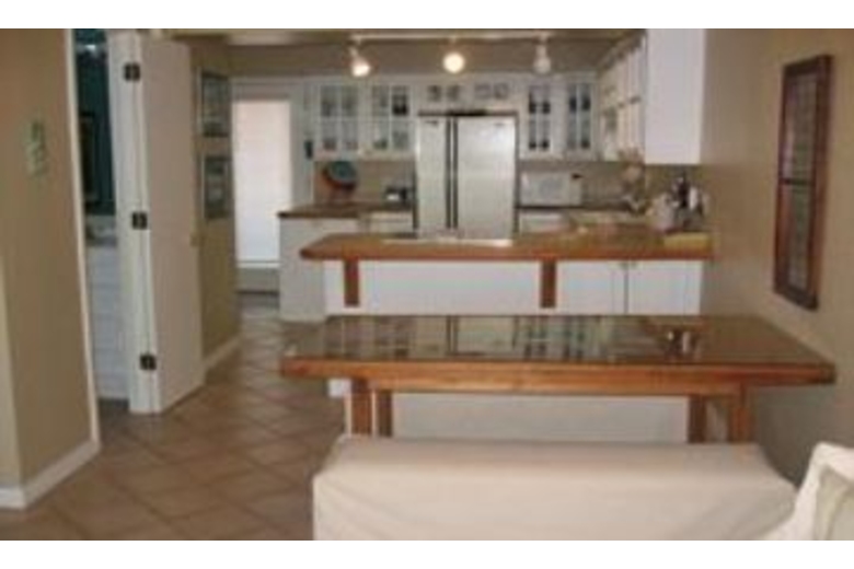 There are 2 bedrooms and 2.5 bathrooms in this newly decorated town house. The master bedroom has a king sized bed and walk in shower in its bathroom. The second bedroom has bunk beds, full sized mattress on bottom, twin sized on top, and a pull out bed underneath bunks, there is a private bath with a jetted tub. There is a fully equipped kitchen with glass front cabinets and tile countertops. The living room gives way to the deck where you can enjoy the great ocean views. More amenities include a washer and dryer, high speed internet, three TVs, cable, and DVD/VCR players.Surrounding Description