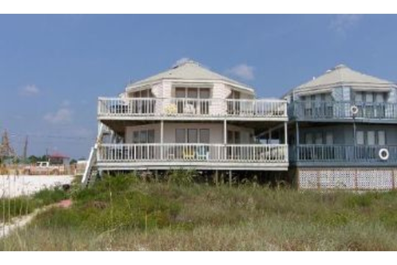 There are panoramic views from the ample decking and because this property is octagonal in shape, there are views from inside most of the house. This unit has all the necessities to make a perfect beach vacation! Floor Plan: 1st Level-Living room with sleeper sofa, TV, DVD, Radio/CD Player; Eat-in Kitchen, full bath, laundry closet, Bedroom 1-queen bed and TV; Bedroom 2-queen bed.Surrounding Description