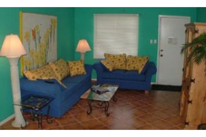 Private decked area overlooking tropical landscaping. This is the closest one bedroom cottage to the heated swimming pool. Sand Dollar Cottage has two interconnecting doors to the Sand Dollar cottage should you wish to open them, yet still be able to close off the doors for privacy when you want to.Surrounding Description