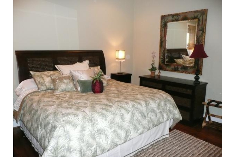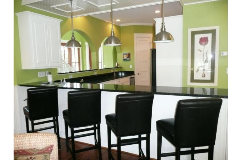 The main entrance is through arched hallways into the spacious living area, it is complete with built-in entertainment systems, dining room with seating for 8-10, gourmet kitchen and a wrap-around bar with four bar stools for extra guests. The first floor has 10' ceilings with a screened porch off the living area. It is equipped with a gas grill. There is a master bedroom on the first floor equipped with its on TV and a master bath with both a shower and Jacuzzi tub.