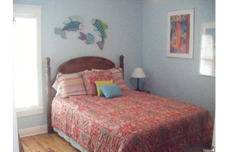 The 3 story house has 2 family living areas. The first level has the bunk room and an attached bath. Also, on this level is the entertainment area for the kids. This area has a large TV with surround sound and easy access for plugging in video games. It has an XBOX 360 and a DVD player. Another bedroom with a king-size bed and private bath with enclosed shower is on this level.