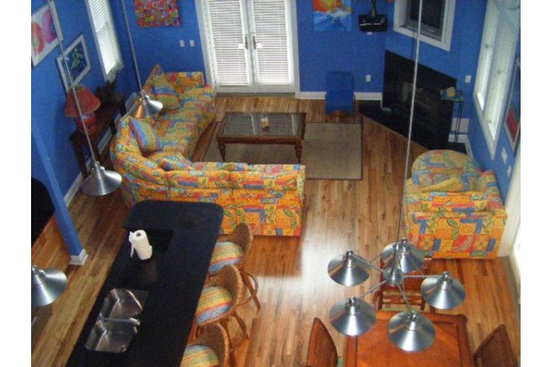 The third level has a balcony overlooking the second floor and coffee niche with it's own microwave and refrigerator. It opens onto another wrap-around balcony with an outdoor sound system and views of the water. The master bedroom and bath are located on this level. The master bedroom has a king size bed and private balcony. The master bath has a jetted whirlpool tub and separate enclosed shower with two shower heads.