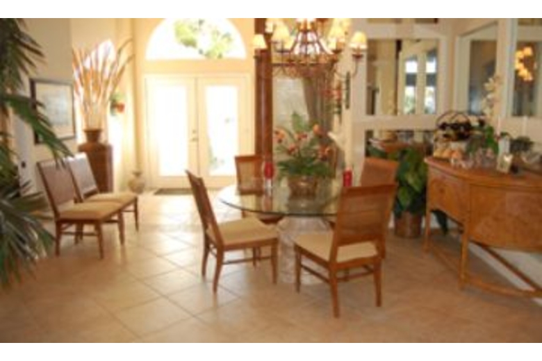 This lovely gated golf course community home can sleep up to four people with a king bed in the master bedroom and a queen bed in the second bedroom. The large master bathroom has a jetted tub for your enjoyment. Or you can relax in the hot tub in the backyard. There is also a private deck with a grill. This luxurious home has a fully equipped kitchen for your convenience and if you don't feel like eating outside on the patio, you can eat together at the dining table inside the house. You will find comfortable couches in the family room where you can either relax or you can watch some tv.Surrounding Description
