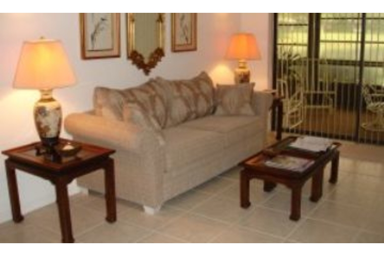 Relax on your private lanai where you will enjoy amazing views of the lake, grand fountains and the Florida landscape. There is also a fully equipped kitchen with everything you will need to prepare your favorite meals or step outside and fire up the grill to enjoy a barbecue.This unit features two bedrooms and two bathrooms with sleeping accommodations for up to six people. The master bedroom has a king size bed and the second bedroom has two twins. There is also a sleeper sofa to provide room for the extra guests.Surrounding Description