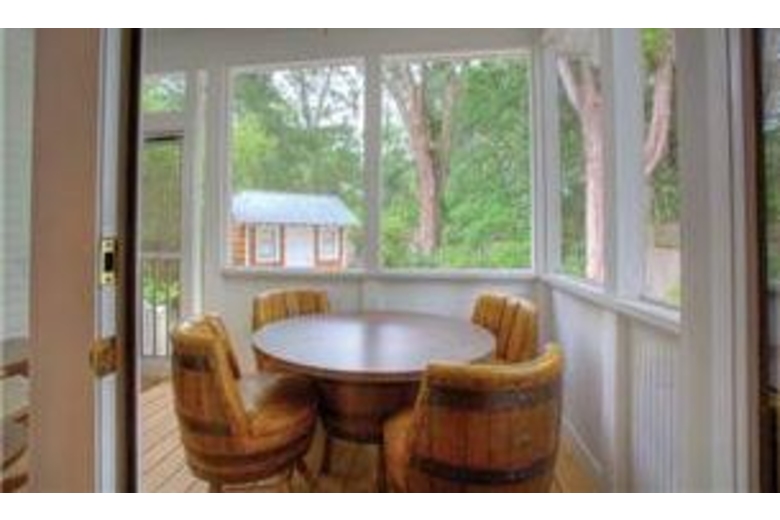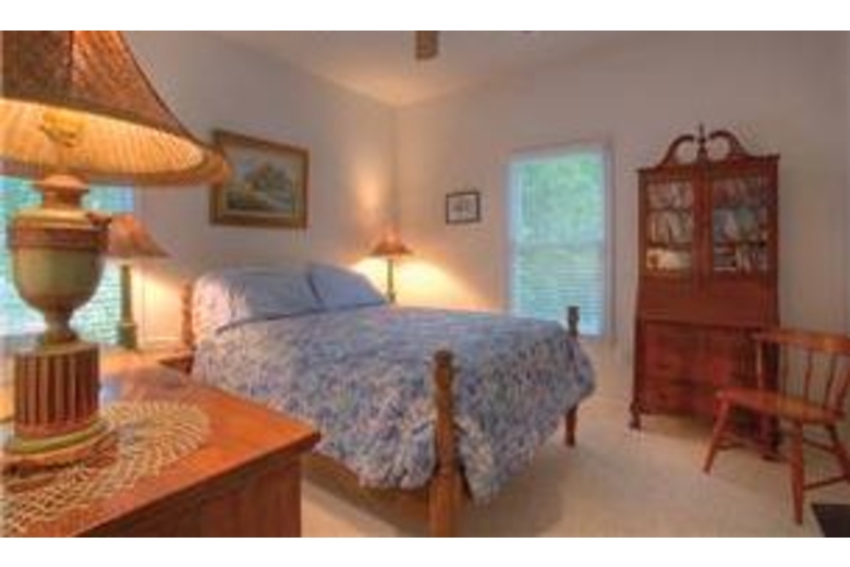 You can enjoy the outdoors from the swing on the front porch or the rockers from the screened in back porch overlooking a beautifully landscaped, fenced back yard. Inside features include unique antique furnishings along with comfortable modern day amenities such as recliners in the living areas and ceiling fans in each room. The Cabin, located at 110 Jordan Lane, is just approximately 1/2 mile to the beach and village! Bedding Includes: 1 king, 1 double.Surrounding Description