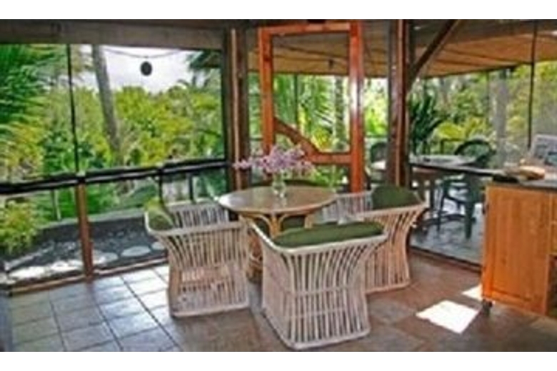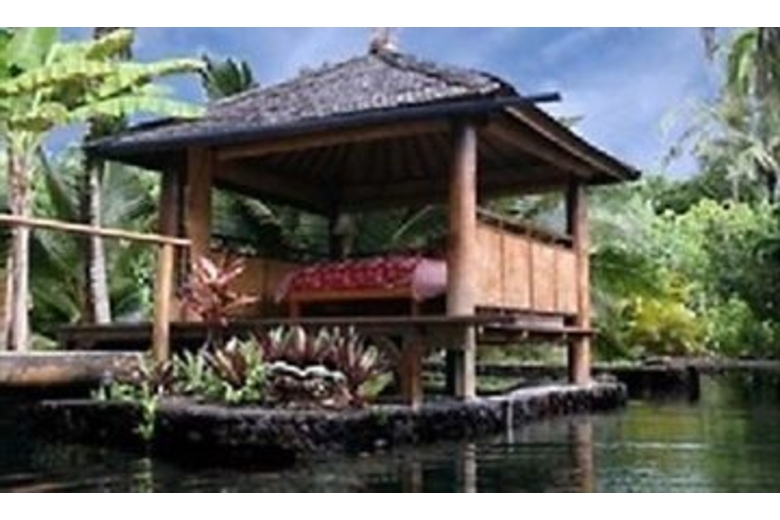 Beneath lush coconut and tropical palms, the healing waters average 90 degrees year round and are perfect for swimming, snorkeling or therapeutic bathing. There’s also thousands of tropical fish to entertain you. Round House: A 600 square foot Bali-style structure for yoga, meditation, exercise, massage, meetings, entertaining or just relaxing in front of the TV. The structure also features a full-size fold out bed.Surrounding Description