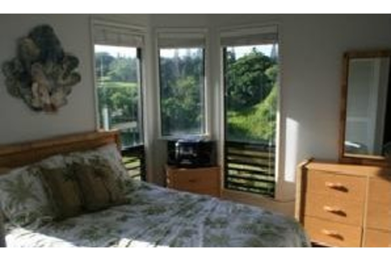 These Hawaiian villas are within walking distance to the beach and Princeville Hotel. Enjoy views of Hanalei Bay, ocean, mountains or golf course plus spectacular summertime sunsets. Playful dolphins will entertain you year round and the humpback whales arrive every winter.