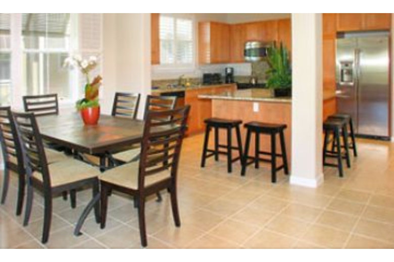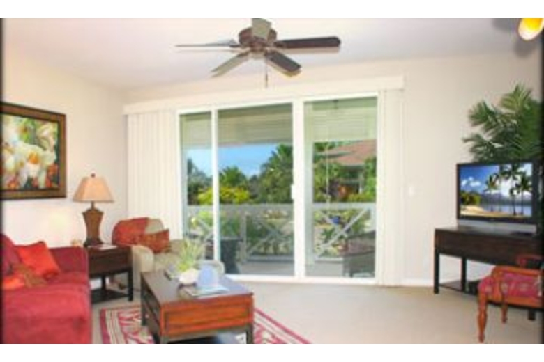 The gourmet kitchen features solid granite counters, eating bar/island, custom kitchen cabinets, and all new appliances, full size refrigerator, stove, dishwasher, microwave, coffee maker, other appliances, top of the line dinnerware and glassware. There are two televisions, DVD ’s and CD player, free high speed wireless internet access, phone and all local calls are included. You are next to and have access to the Nihilani swimming pool and recreation room. Great Lanai, king size bed in the master and two queen beds in the other two rooms.Surrounding Description