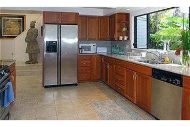 The light-filled two-story living room is surrounded on three sides with floor to ceiling windows to enjoy panoramic views of the golf course, pool and Hanalei mountains. The master bedroom on the upper level overlooks the two-story living room and has a luxurious bath suite and a separate sitting area. The kitchen has cherry cabinets, granite countertops, and new range.Surrounding Description