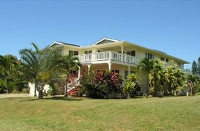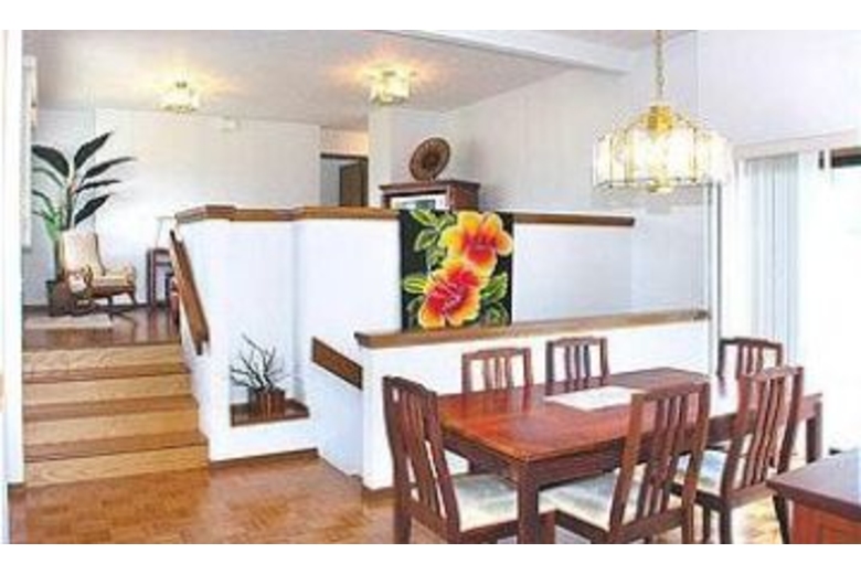 The Dining Room has a beautiful koa wood dining room set to entice to enjoy a relaxing meal. This spacious split level home was designed and furnished to welcome its guests with the warmth of the Aloha Spirit. It has all the amenities to make your stay on the Garden Isle of Kauai a memorable and relaxing getaway.Surrounding Description