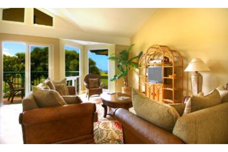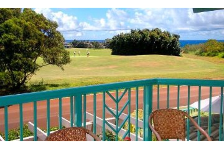 Two large master suites are downstairs with a third bedroom and bathroom upstairs. The upscale and fully-equipped kitchen makes it easy to dine at home if you wish. The vaulted ceiling adds to the openness of the great room and lanai where you can enjoy fabulous views of the mountains, distant ocean, and the Prince Golf Course.Surrounding Description