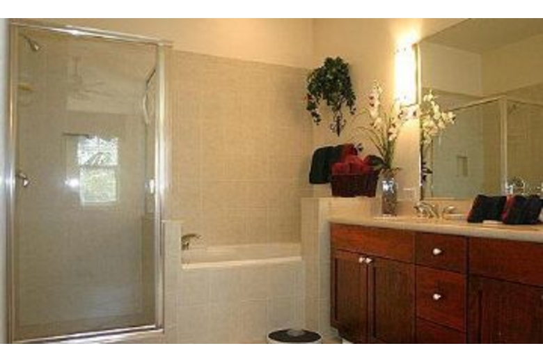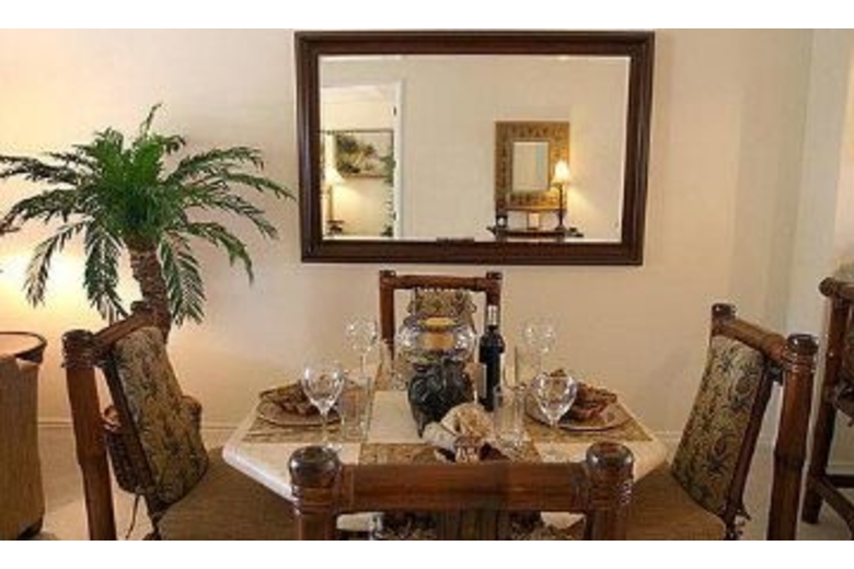 In this townhome there are two bedrooms, two baths with tasteful decor and comfortable furnishings. There is a fully equipped kitchen with a coffee maker, microwave, ice maker and breakfast bar with extra seating. The dining area comes with a wall mirror, table and four chairs. The living area has a DVD player, VCR and TV. The first bedroom has tile flooring, a ceiling fan and queen bed. The master bath comes with a separate tub, tile flooring and a walk-in shower. The second bedroom has two twin beds and a TV. In the second bath there is a combination tub/shower. There is a window A/C, high speed internet, a washer, dryer and stereo in this unit.Surrounding Description