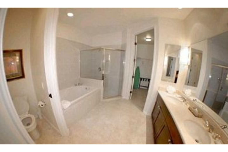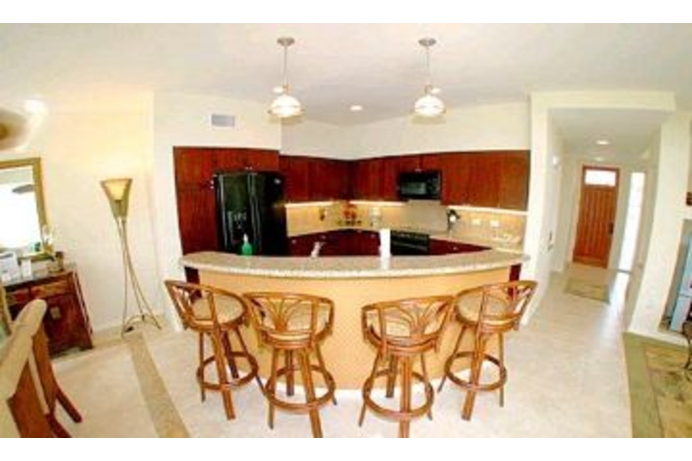 This townhome offers a balcony with outdoor furniture along with three bedrooms and three baths. The first bedroom has a queen bed and ceiling fan. The master bath has a separate tub and shower. The second bedroom has a double bed and the second bath has a combination tub/shower. The third bedroom has two twin beds and a TV. There is a fully equipped kitchen with a breakfast bar and extra seating plus an ice maker and microwave. The living area has a TV, DVD player, VCR and access outside to the balcony. The dining area has a table, ceiling fan and six chairs.Surrounding Description