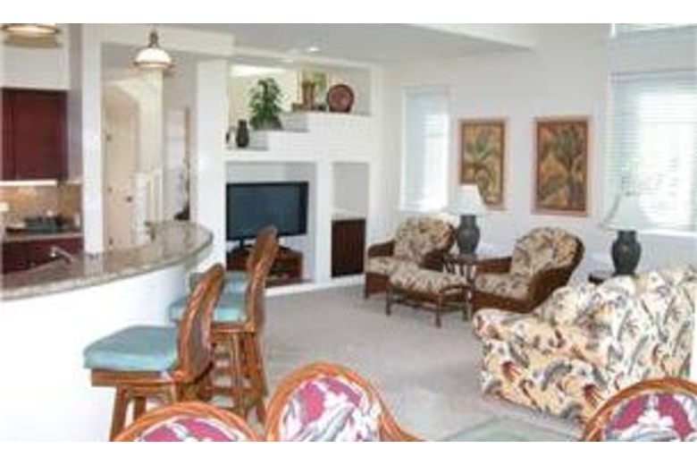 Our large villa has a fully-equipped modern kitchen with mahogany cabinets, granite counter tops, refrigerator with filtered water, ice maker, microwave, dishwasher, disposal, washer/dryer and air conditioner. The kitchen is fully stocked with cookware, dishes, utensils, coffee maker, blender, toaster and more. The living room has a flat screen TV with cable. A cordless telephone with answering machine includes unlimited Free local calling. Sleeping arrangements include one king in master bedroom/bath, queen in second bedroom/bath and twin beds with adjoining bath. Each bedroom has its own TV and cable. Bed and bath linens and paper products, laundry detergent, soaps, etc. are provided.Surrounding Description