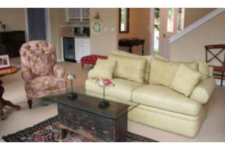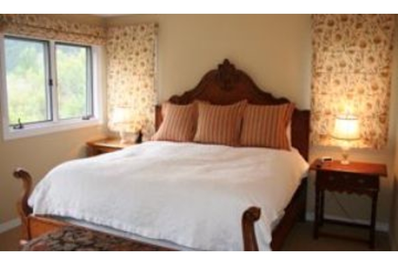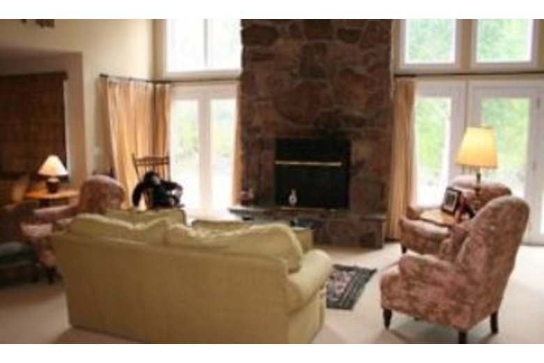 The elegant and comfortable living room surrounds the fireplace and has a bank of windows overlooking the stream and woods. You will also find a 36"TV/DVD/VCR. Two sitting areas and a piano to round out the living area. The kitchen has top of the line appliances, seating for 8 at the table, a sitting area, wood fireplace and windows looking out to the mountains, woods and stream. The master bedroom is located upstairs with a King bed and en-suite bath with a soaking tub that has views of the mountains and a beautiful equestrian property down the road. The bathroom also has a separate shower. The second bedroom has two twin beds, 12"TV/DVD and its own full bath. The third bedroom has 2 twin beds and the fourth bedroom has a Queen bed. This serene property is a private, quiet home in a park-like setting and sleeps 8 comfortably.Surrounding Description