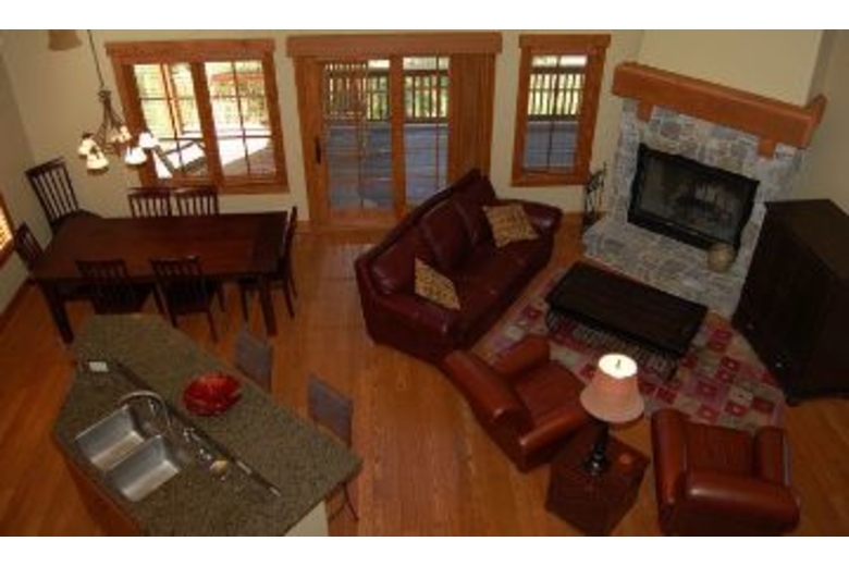The sleeping accommodations can provide comfort for up to 6 people. This three bedroom home also has 3 full bathrooms. The master bedroom has a King bed. The main level has two bedrooms one with a queen bed and one bedroom with two twin beds. When it is time to eat you will do it in style with the beautiful equipped kitchen. Granite counter tops, stainless steel appliances as well as all the house wares you expect to find in a fine home await you when it is time to share a meal.Enjoy the outdoor fireplace or relax in your own private hot tub from the wrap around deck. Gather inside in the great room with its real wood burning fireplace and soaring ceilings.Surrounding Description