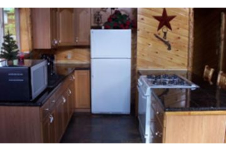 This four bedroom unit also has two and one half bathrooms and will comfortably accommodate up to twelve people. There are four bedrooms with a queen size bed in each one and one of the bedrooms also has a set of bunk beds. The living area becomes an extra room in the evening with a queen size sleeper sofa. The kitchen is fully equipped with everything needed to make meal preparation easy including granite countertops. The living area has a beautiful river rock fireplace, and a 48" Plasma television. Additionally, there is a gas grill and a hot tub on the wrap around deck.Surrounding Description