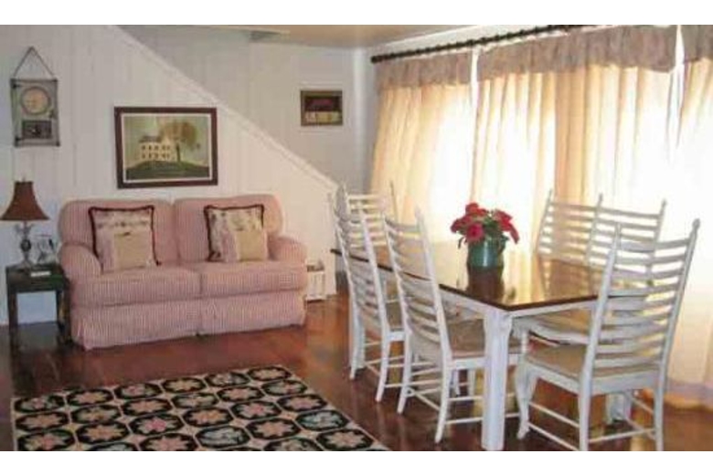 There are hardwood floors and country furnishings. The living room has a wood-burning fireplace. The kitchen has a gas range, sub-zero fridge, D/W, M/W and counter seating for three. The dining room has seating for eight. There are several TVs, VCRs, and a Jacuzzi on the deck. The separate laundry has a W/D with access to the garage. Bikes are provided for guest use.Surrounding Description