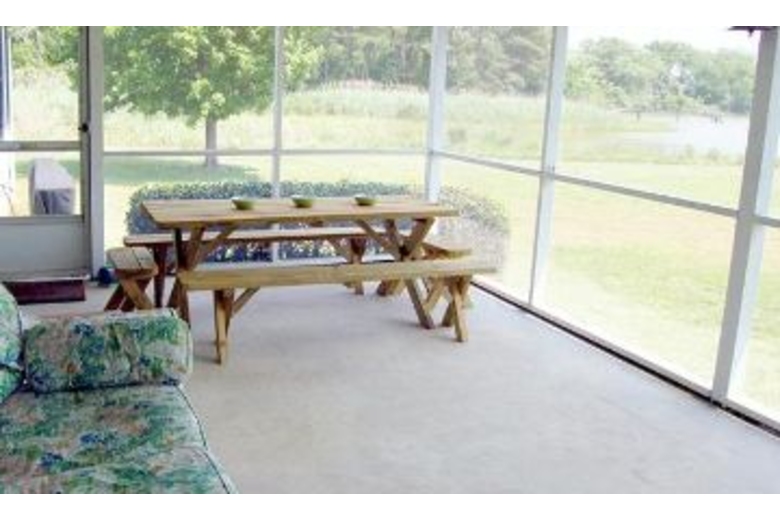 Take the family on a relaxing vacation and stay in this lovely home. The living area is nicely furnished with comfortable seating, an entertainment center and a view. The kitchen is fully equipped and offers everything you’ll need to prepare a fantasy meal or a simple snack. The dining area provides a picnic table where you can enjoy a delicious treat with the family.This lovely home features three bedrooms. The first bedroom features a beautiful queen bed. The second bedroom also features a queen in bright, fun bedding. The third bedroom is great for the kids and features two twin beds. Enjoy a view from the screened-in porch, take a dip in the pool or head down to the river. You will have a great time during your stay in this home.Surrounding Description