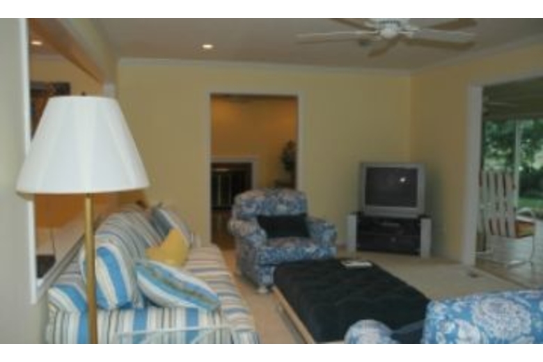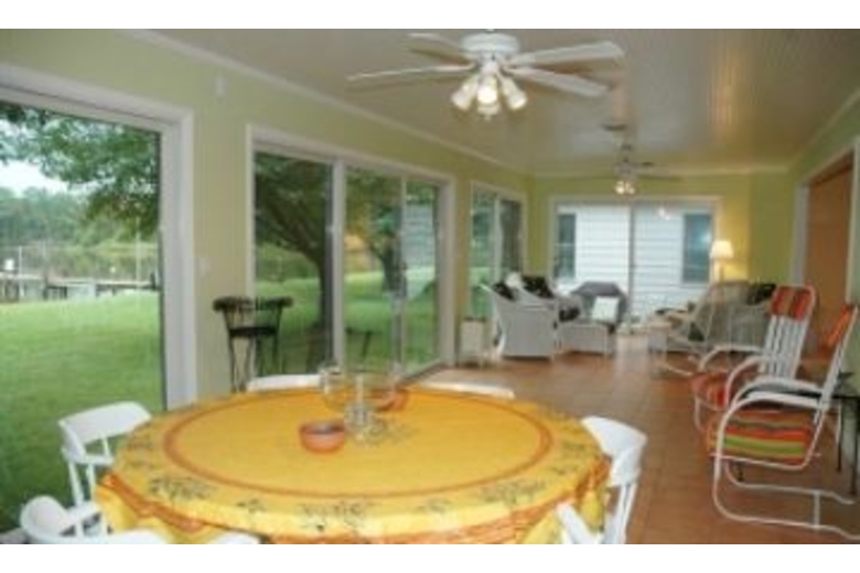 This home has three bedrooms and two and a half bathrooms. The bedding includes a king bed in the master and two twin beds in each of the remaining rooms. There is also an additional twin bed in the office. The open floor plan includes a fully equippped kitchen, separate dining room, spacious living room and a nicely furnished sun room. A washer and dryer are on-site for your convenience. Other features include a patio, internet access, and a private dock.Surrounding Description