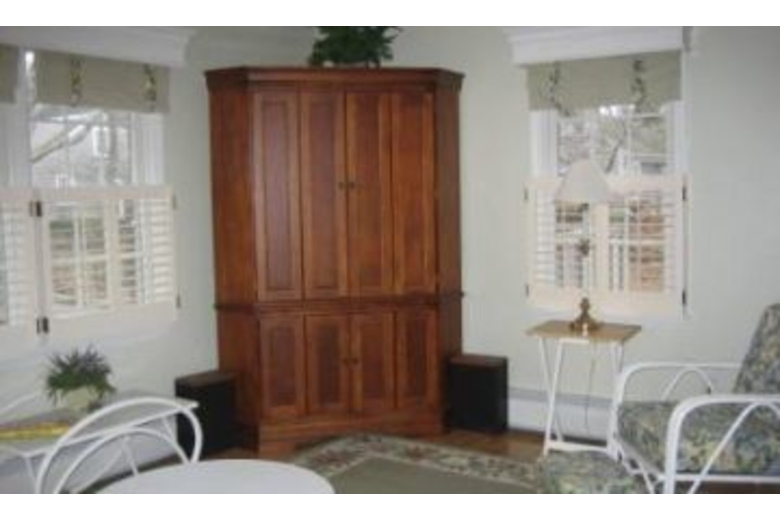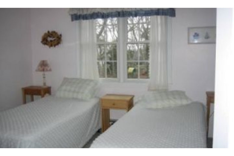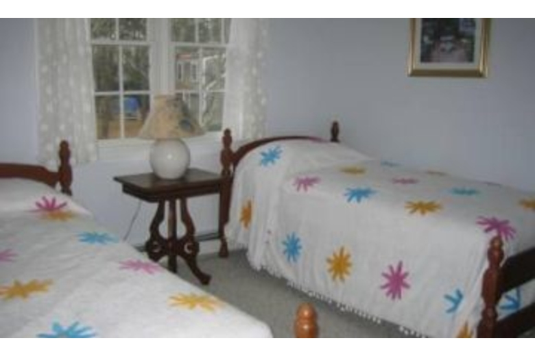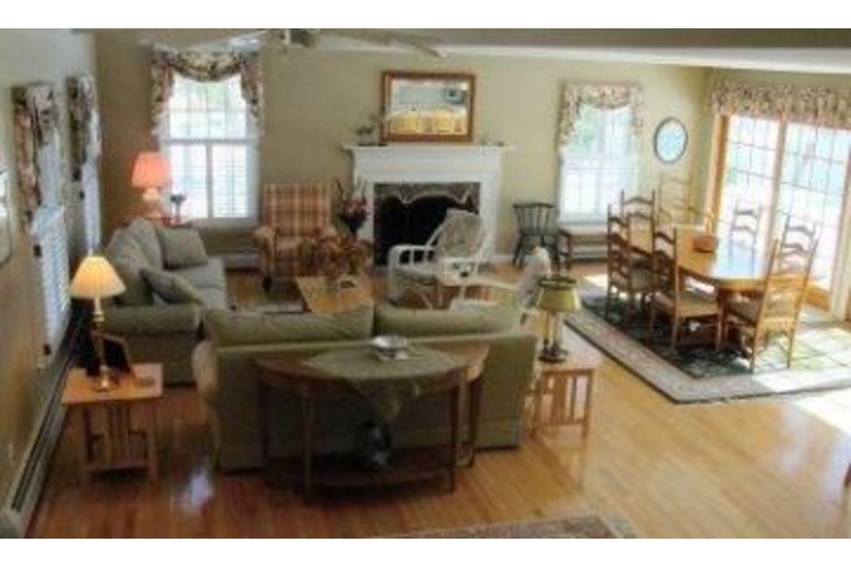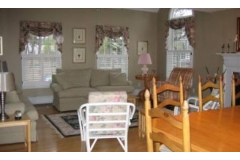 This is a four bedroom, three bath house that sleeps up to eight people. The first bedroom has two twin size beds with floral bedspreads, a small nightstand in between the beds, and framed artwork on the walls. The second bedroom has two twin beds and three nightstands. In the third bedroom there is a queen size bed, cheval mirror, and two nightstands. The fourth bedroom has a double bed. The living area has cozy furnishings, fireplace, and hardwood floors. The dining area has a beautiful wood table, six chairs, and an area rug underneath. The fully equipped kitchen has everything you need to cook and enjoy your family's favorite meals. This unit also has a washer/dryer, den, gas grill, cable TV, DVD player, and a VCR.Surrounding Description